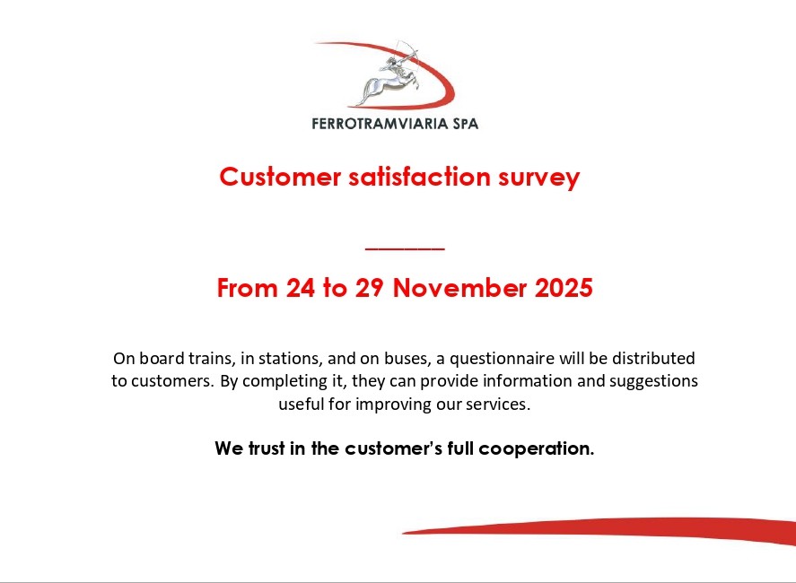 On board trains, in stations, and on buses, a questionnaire will be distributed to customers. By completing it, they can provide information and suggestions useful for improving our services.